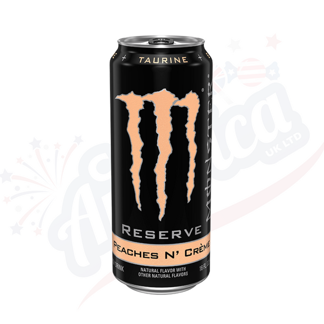 Introducing Monster Energy Reserve Peaches N Creme - the perfect fusion of sweet peaches and creamy flavor. This 473ml can packs a punch with its Monster Energy blend, giving you the boost you need to tackle the day. Made for those who want to indulge in a delicious energy drink without compromising on flavor.
