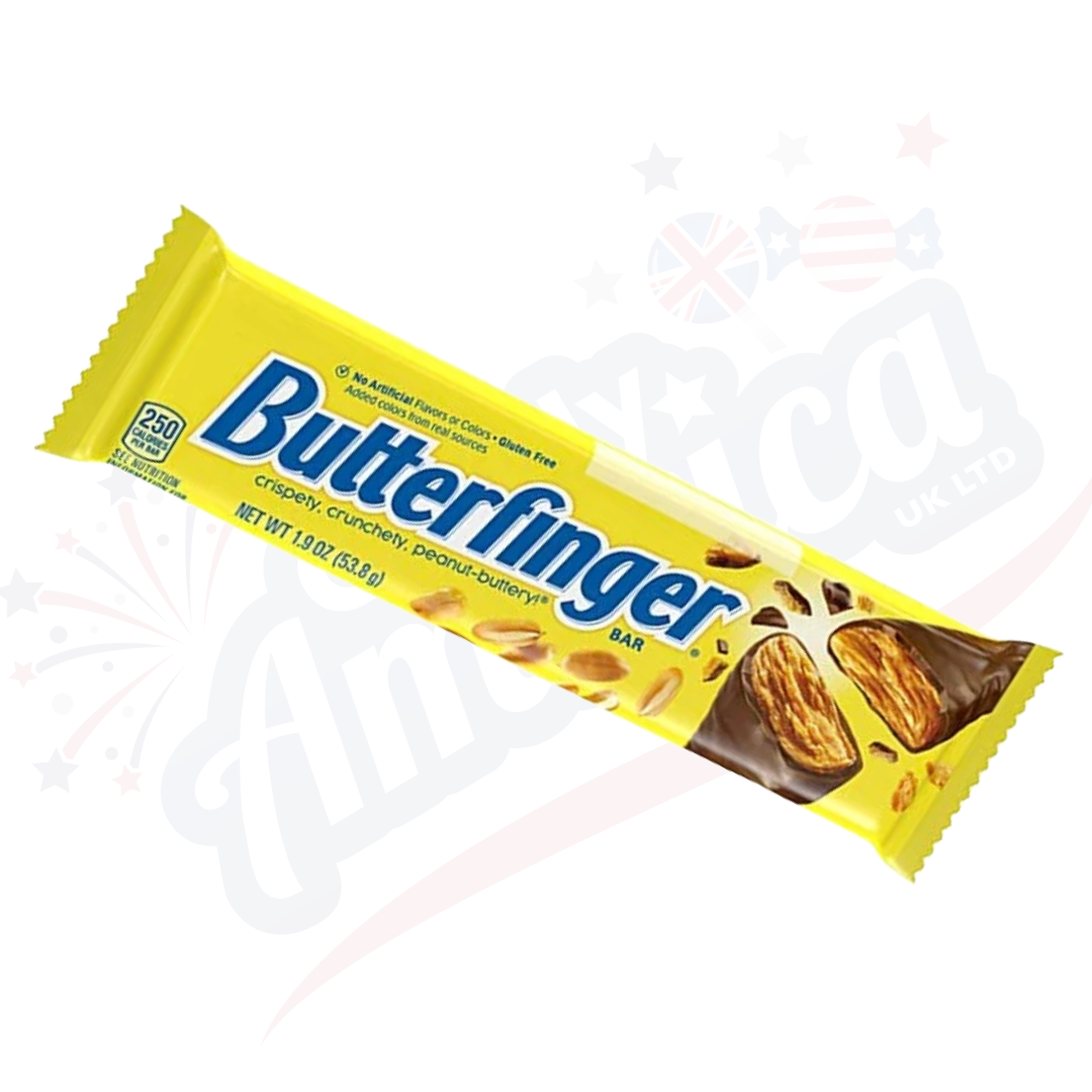 Indulge in the classic taste of Butterfinger chocolate bar. Made with a crunchy, peanut butter center coated in rich milk chocolate, this 53g bar is sure to satisfy your sweet tooth. Enjoy the perfect blend of crispy and creamy textures in every bite. Treat yourself today!
