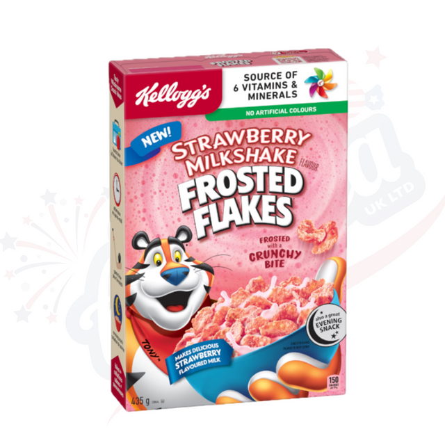 Experience the perfect fusion of classic Frosted Flakes and indulgent strawberry milkshake flavors in this limited edition 350g box. Each crunchy corn flake is coated with a sweet strawberry frosting that transforms your milk into a delicious pink treat. A nostalgic breakfast option with a modern twist that delivers the signature Frosted Flakes crunch with a fruity, creamy finish.