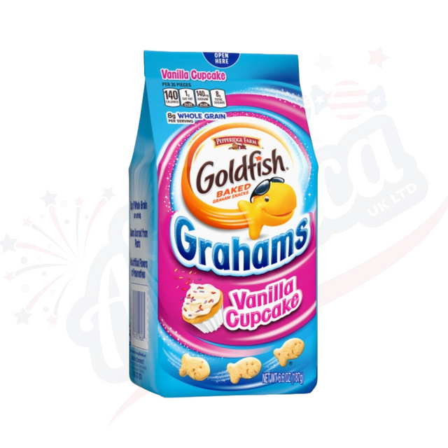 Satisfy your sweet tooth with Goldfish Grahams Vanilla Cupcake. These delicious, bite-sized crackers are baked with real vanilla and have a hint of cupcake flavor. Made with no artificial flavors or preservatives, they make the perfect snack for any occasion. Enjoy the rich, indulgent taste of vanilla cupcakes in every bite.
