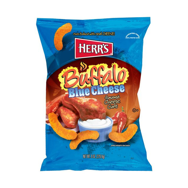 Indulge in the tangy and savoury taste of Herr's Buffalo Blue Cheese Cheese Curls!