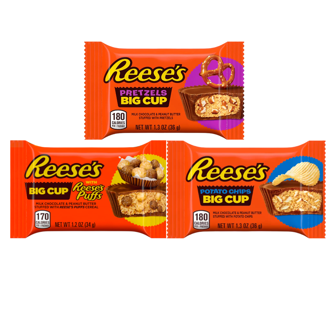 Introducing Reese's Big Cups with Potato Chips! The perfect combination of sweet and salty, these delicious treats are sure to satisfy your cravings. Each cup is filled with creamy Reese's peanut butter and stuffed with crunchy potato chips. Enjoy the perfect balance of flavors in every bite. Perfect for snacking on the go, these cups are sure to become your new favorite treat. So grab a Reese's Big Cup with Potato Chips and get ready for a delicious snack experience.
